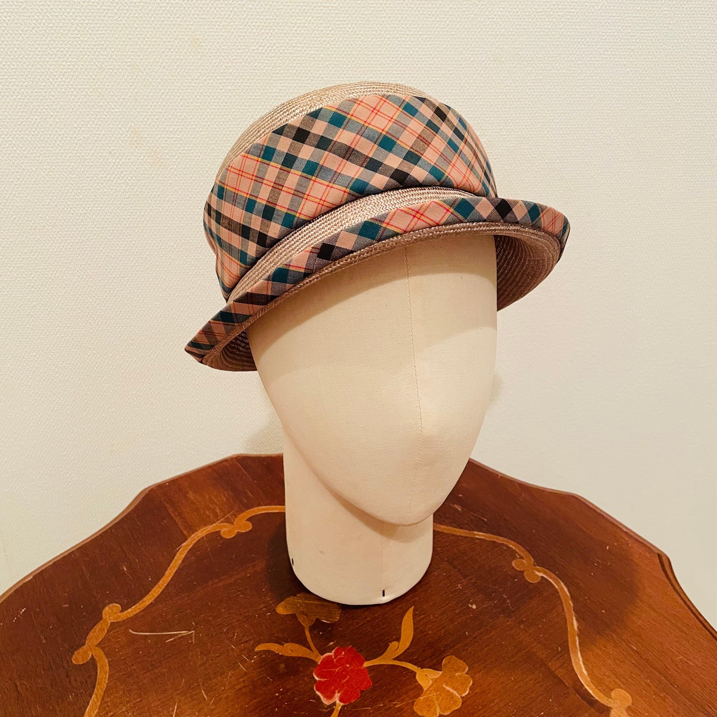 上品なクローシュハットのシルエットに、ブリムを前後でアンバランスにデザインしたハイバックスタイルが個性的な魅力を放ちます。