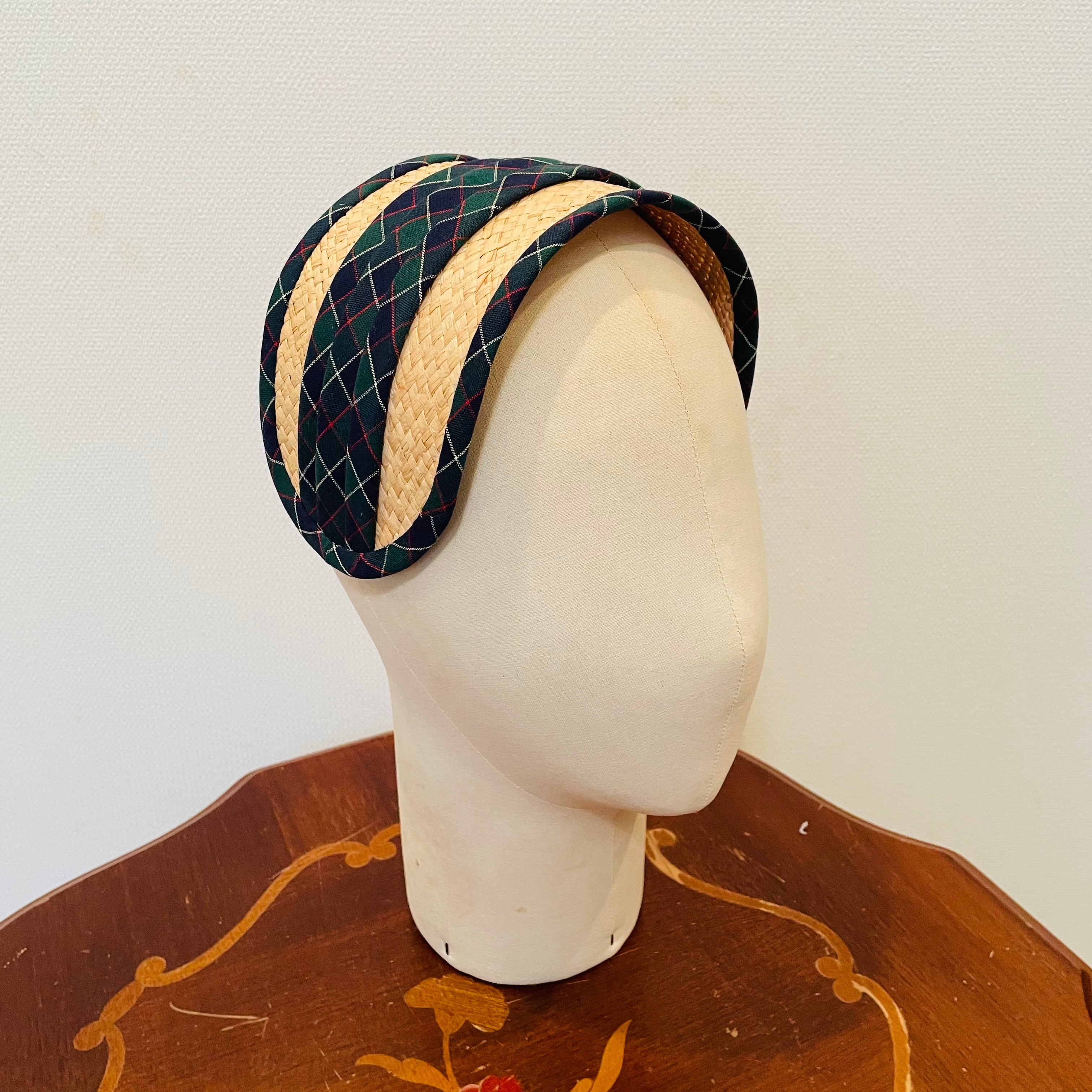 AB012 ラフィア×チェックのエレガントヘッドバンド