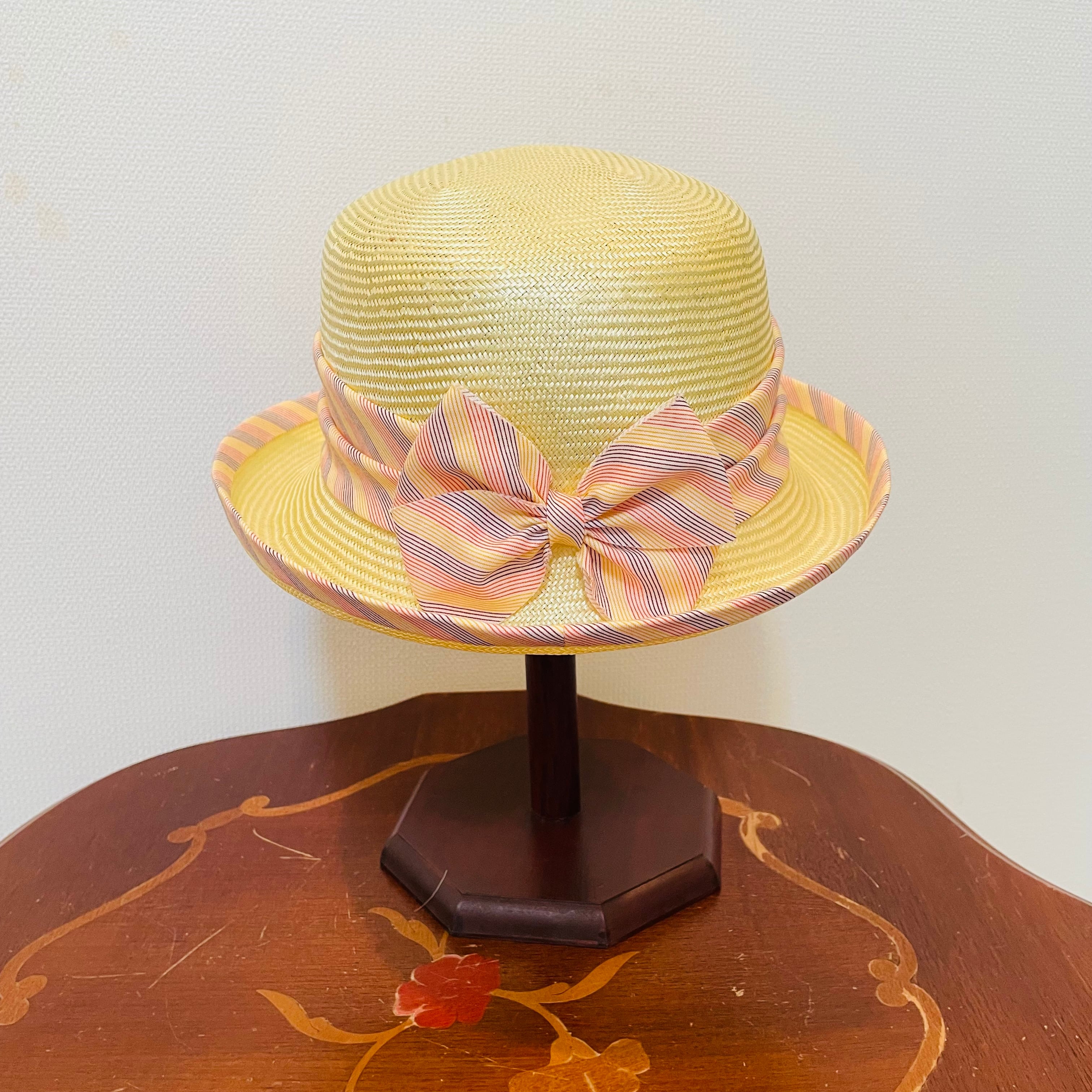 鮮やかなビタミンイエローが、コーディネートに明るいアクセントをプラス。コットン製のストライプ布でトリミングを施し、細部までこだわりを詰め込みました。春のそよ風から夏の陽光まで、シーズンを通してあなたを彩る帽子です。