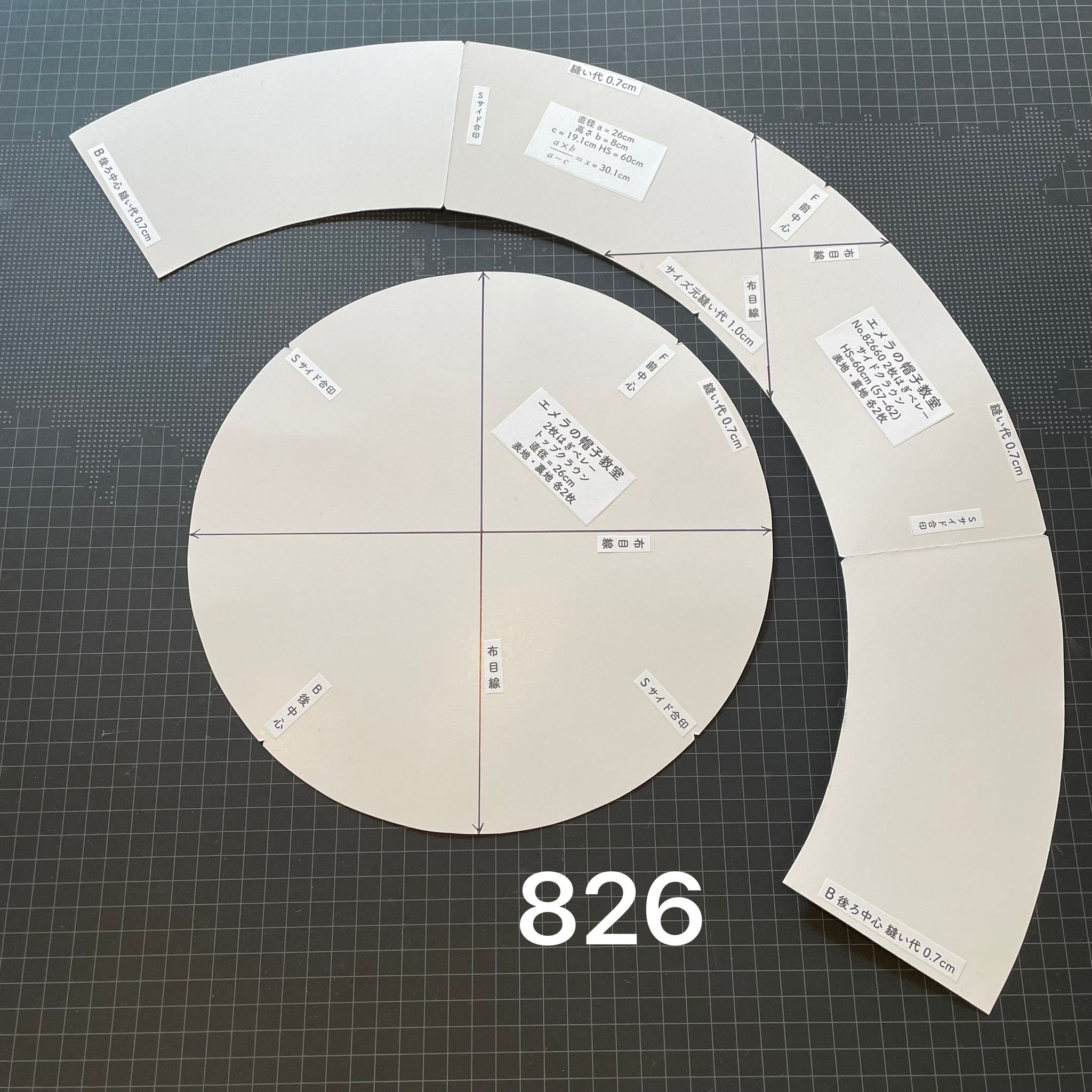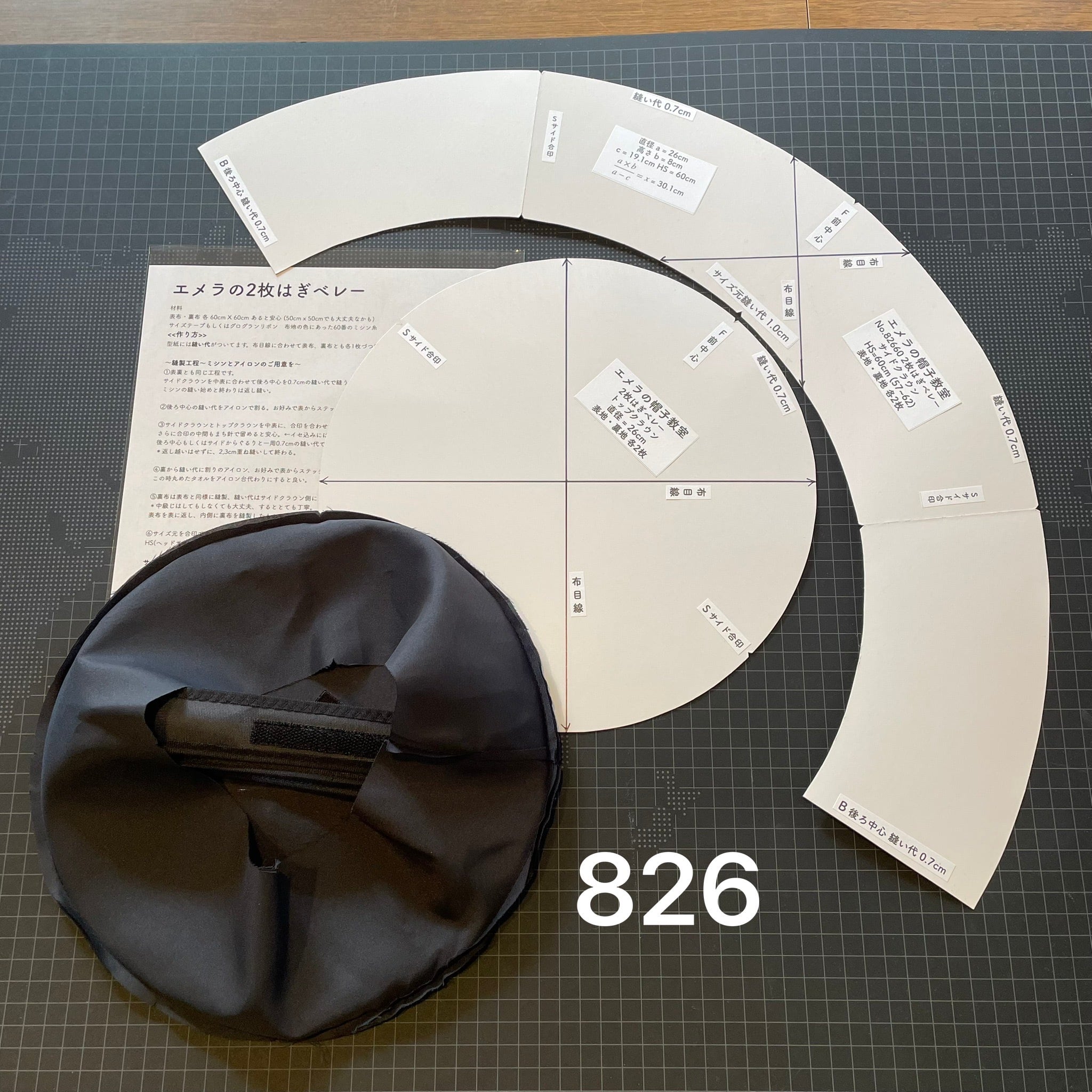 型紙 No.82660 2枚はぎベレー・サイドクラウン高さ8cm / 裏地・サイズテープ付きキット