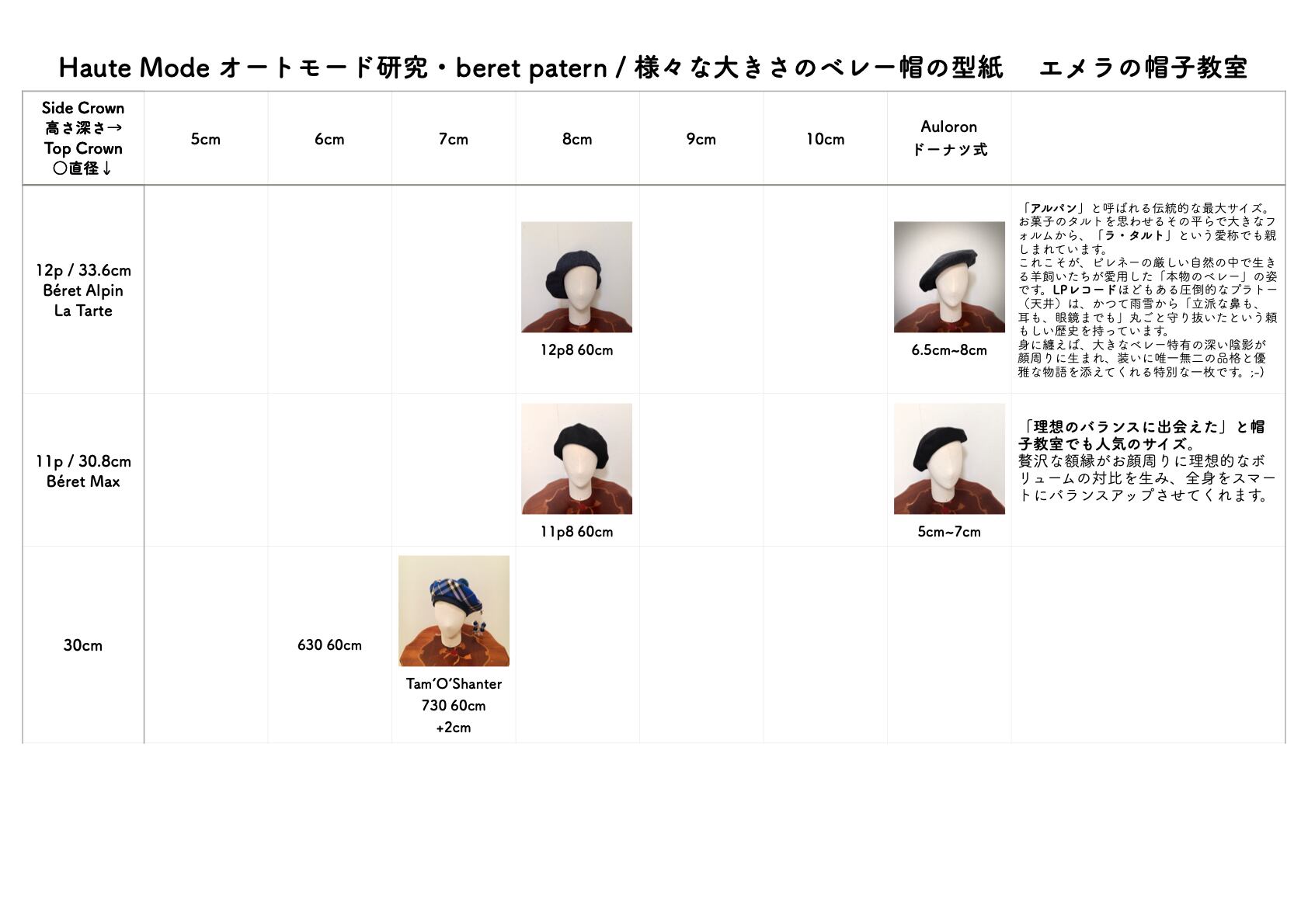 * 2枚はぎベレー帽 型紙(厚紙製、縫い代込み、a/b/HS指定サイズ)