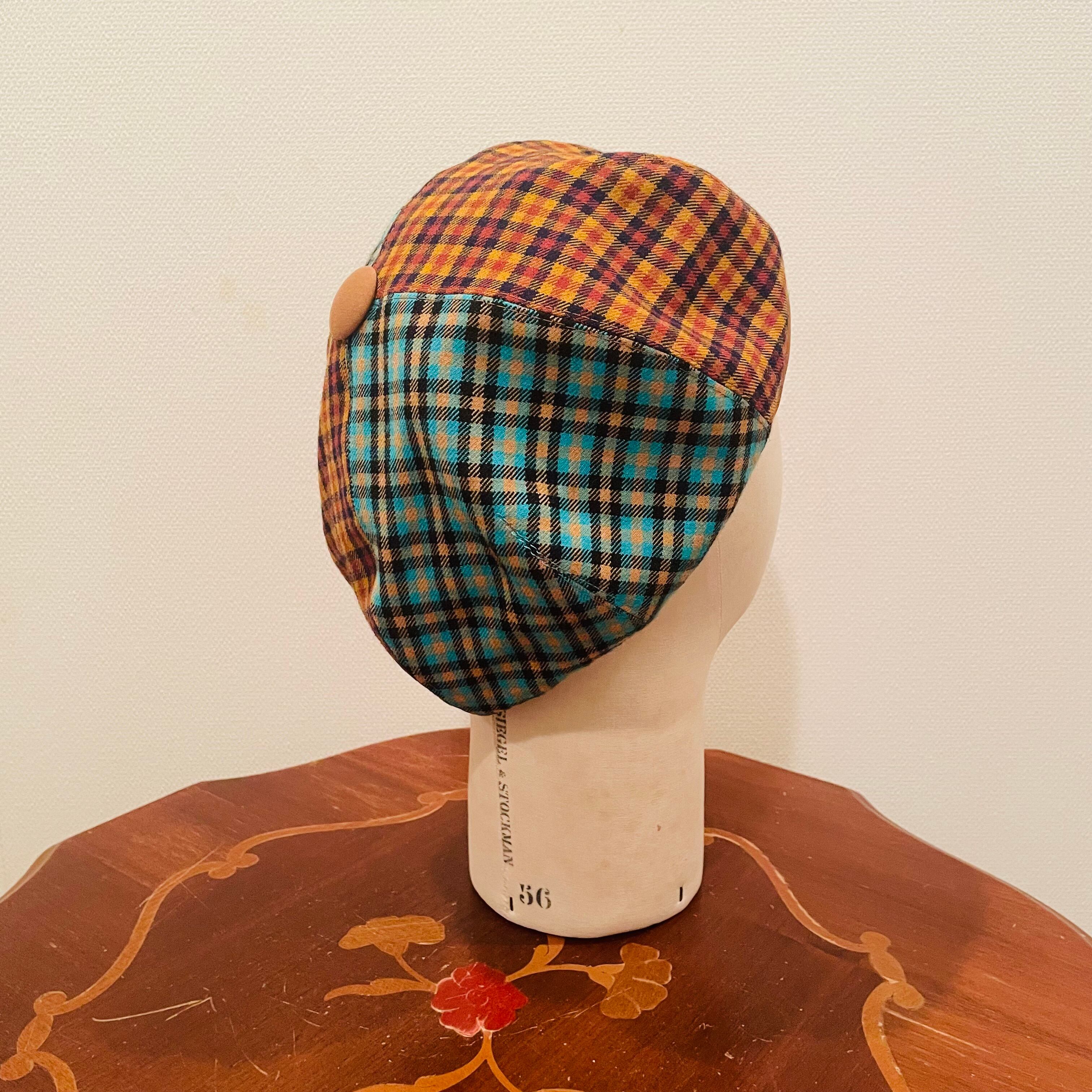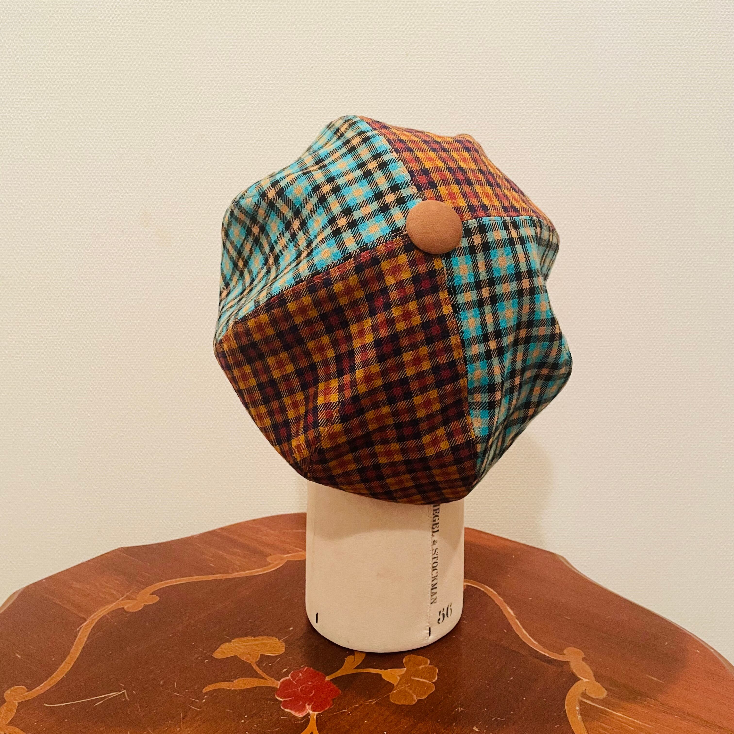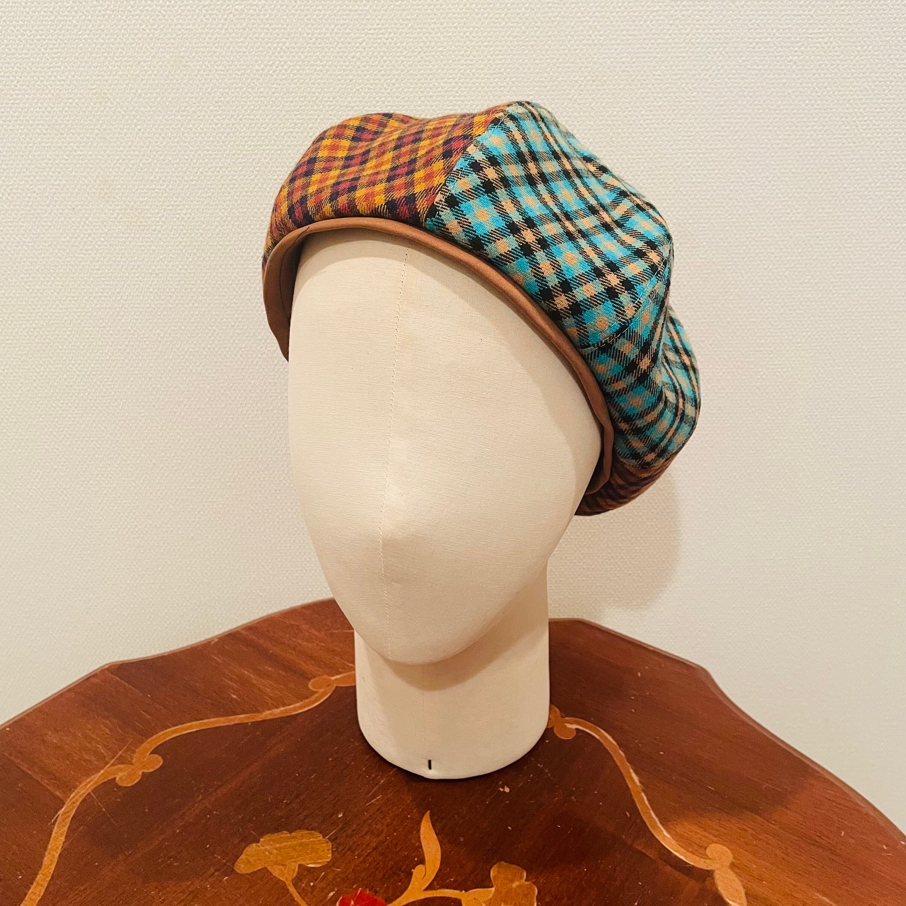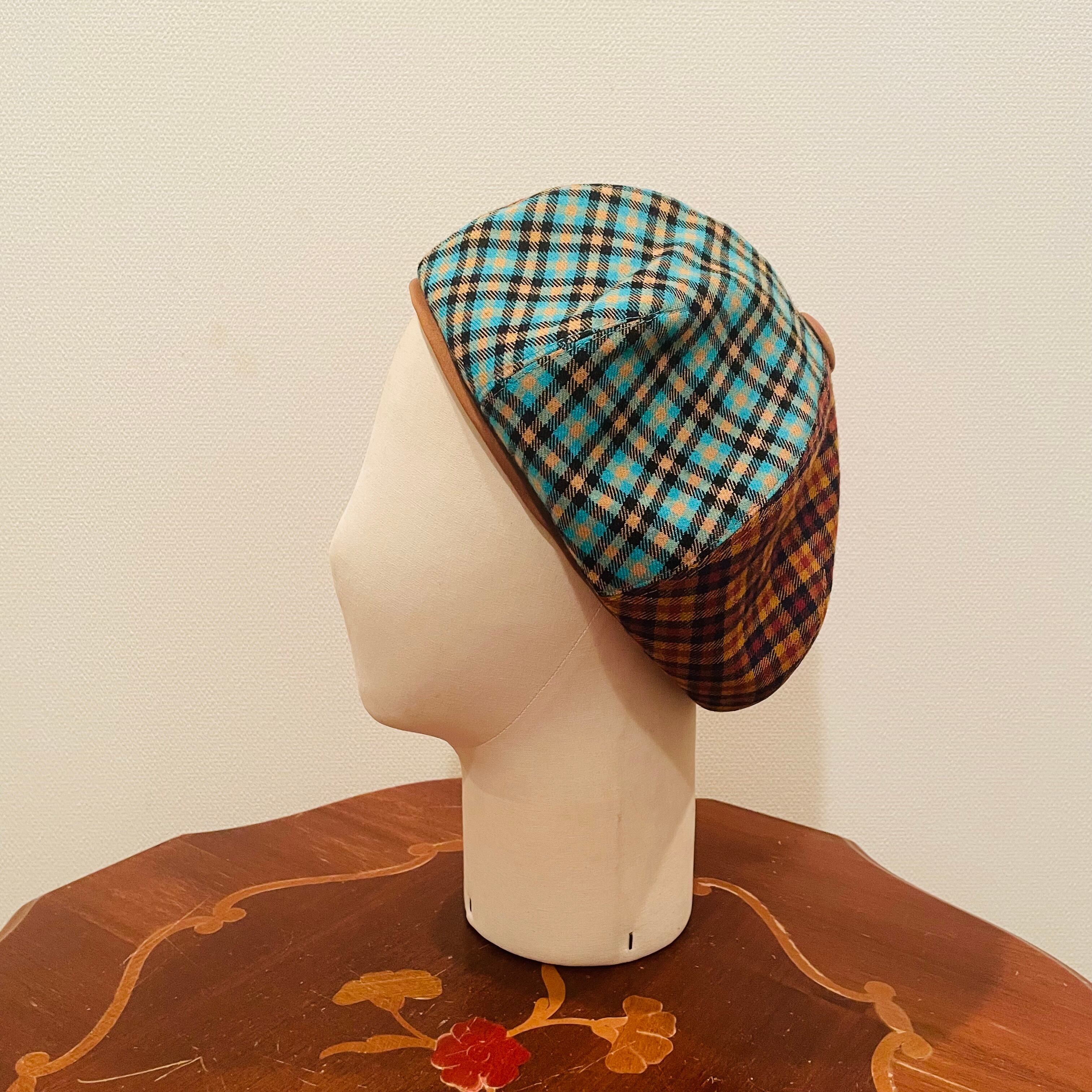 ブラウン×ミントグリーンチェック 4枚はぎベレー帽