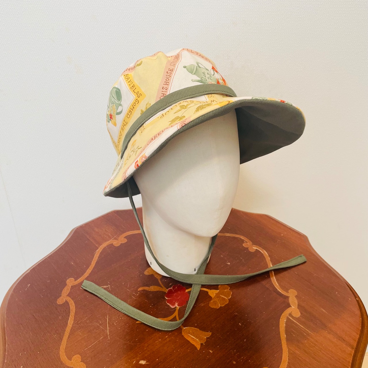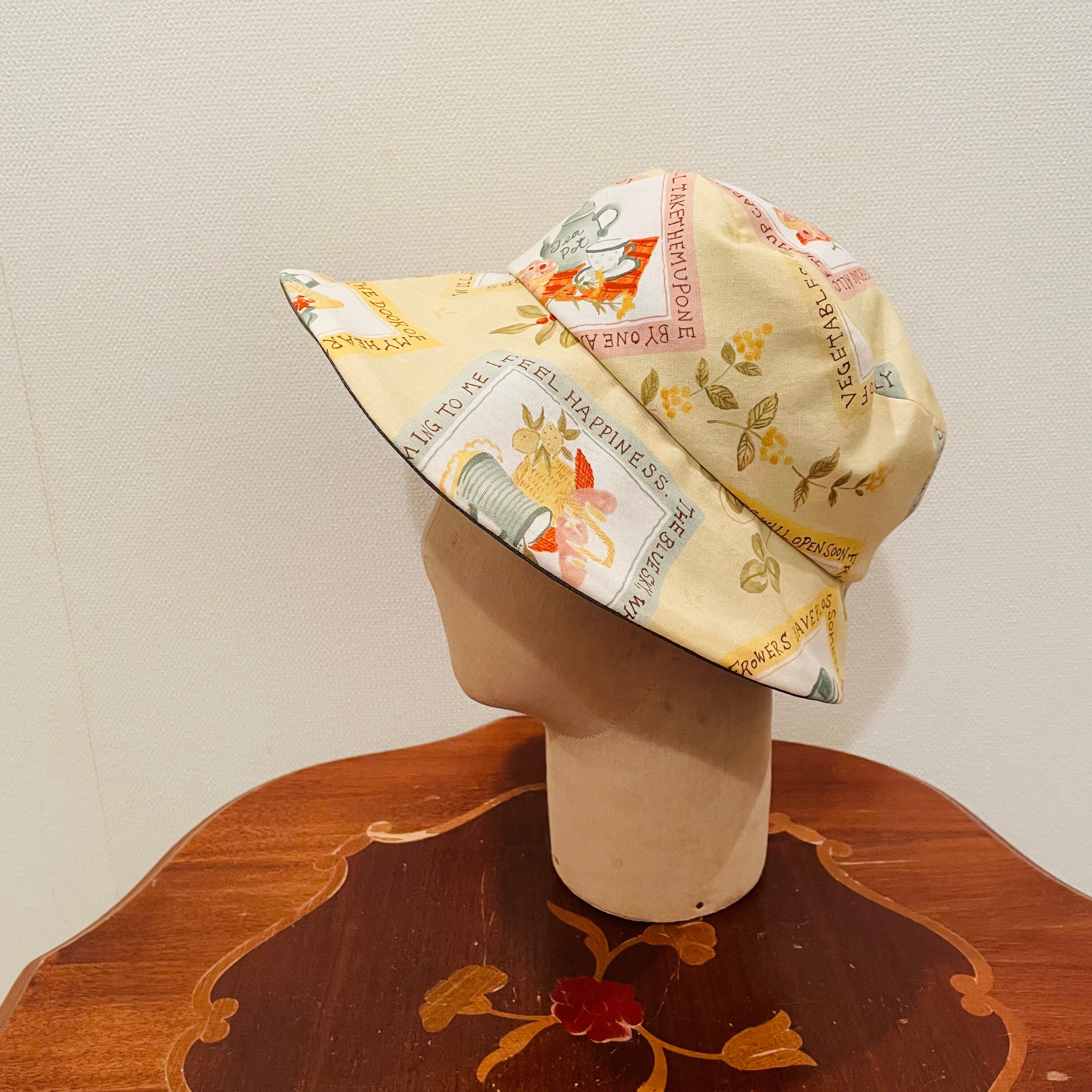ブリム幅F10cm~B6cmのボンネット風の帽子。