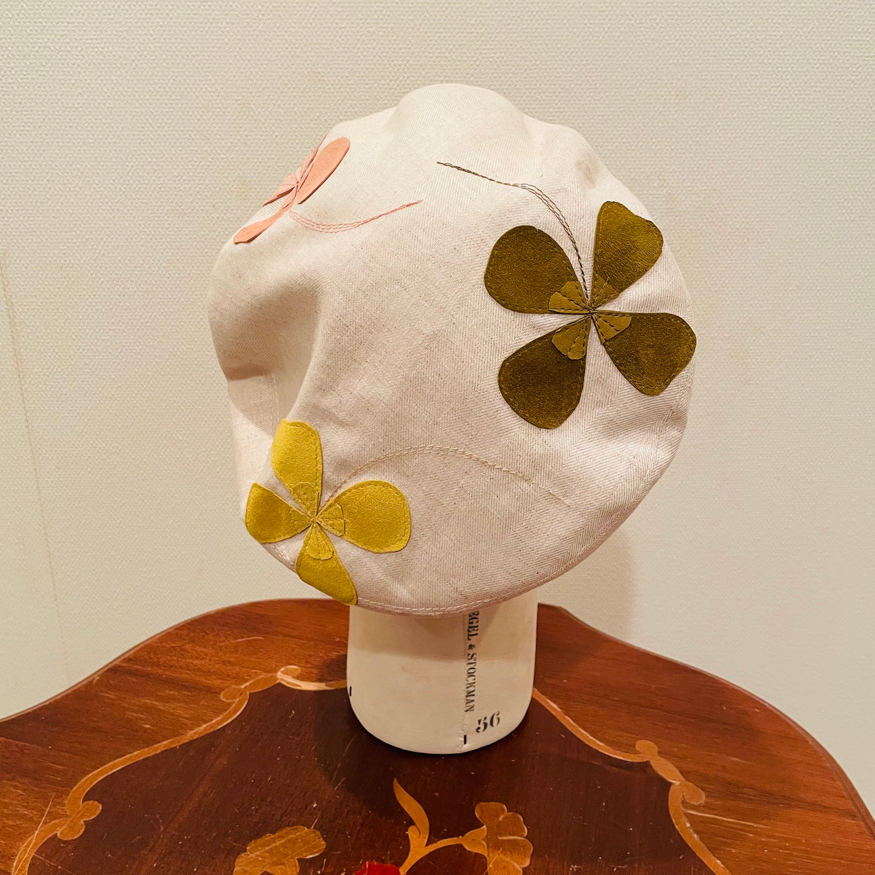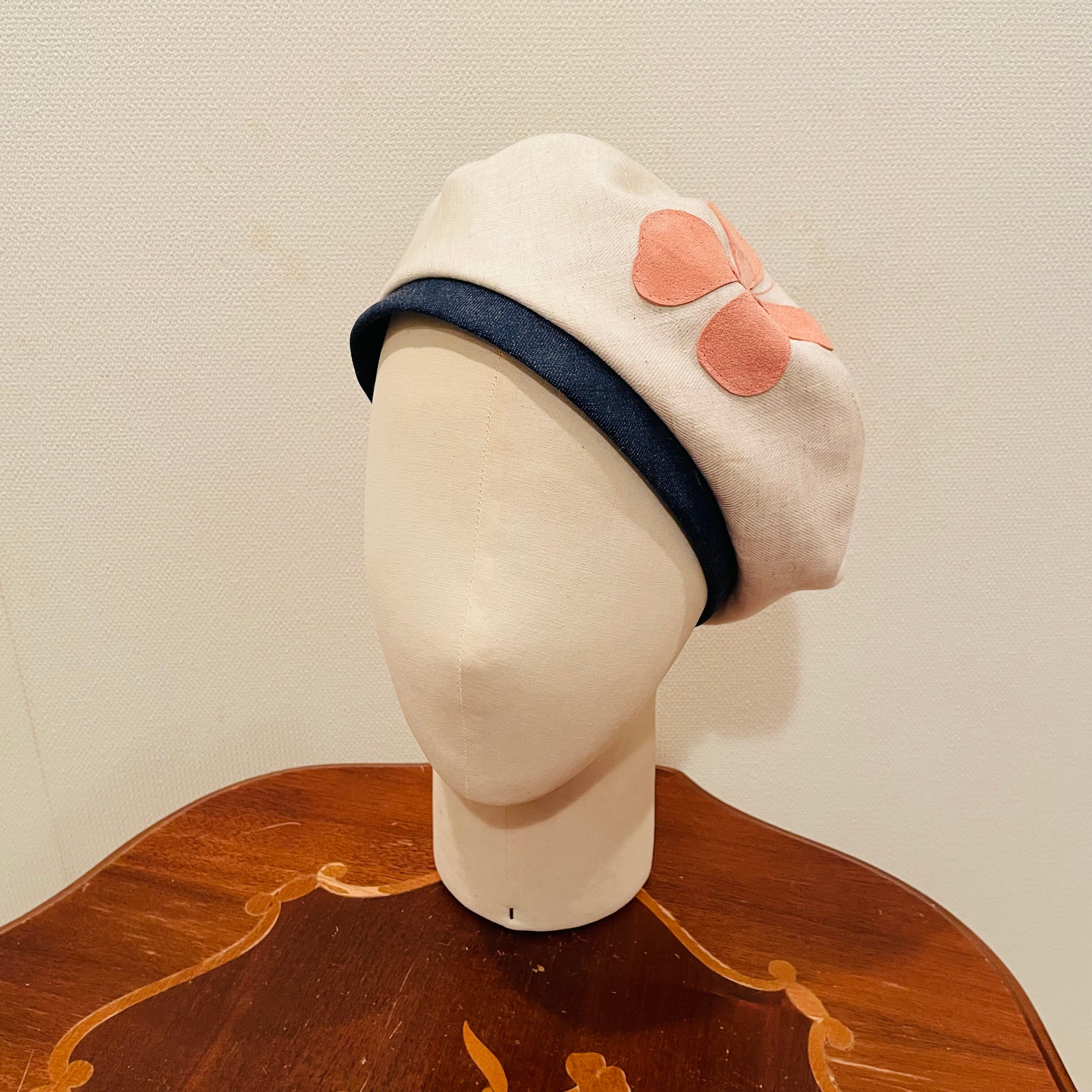 517 2枚はぎベレー・デニム飾りバンド付き826 / 四葉のクローバー 生成り